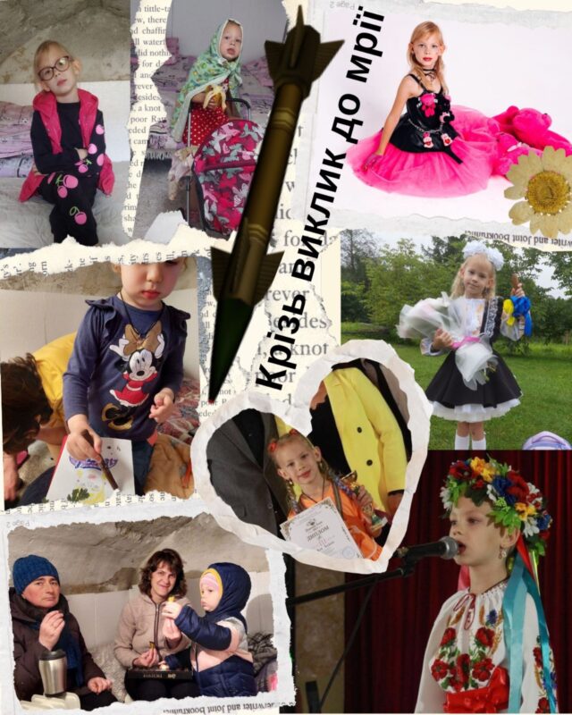 Опис: Цей колаж — маніфест незламного українського дитинства. Погляд у майбутнє починається з усвідомлення сьогодення: ракета та холодні стіни укриттів (безпека тут і зараз) протистоять яскравій мрії про мирне життя. Але небезпека не зупиняє нас: діти співають, здобувають перемоги та сяють у вишиванках. Майбутнє нашої Безпечної Країни — це там, де ці діти реалізують свої таланти, а їхній дім — це не укриття, а залишені на задньому плані пачки паперу, на яких буде написана нова, мирна історія.