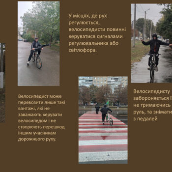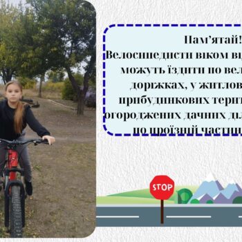 На зебрі зупинись - з велосипеда злізь! Дорогу пішки перейди - і в безпеці будеш ти!