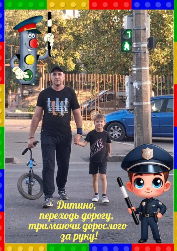 🚦 Правила переходу дороги ✅ Переходь дорогу тільки на зелений сигнал світлофора. ✅ Завжди тримайся за руку дорослого. ✅ Дивись уважно по сторонам.