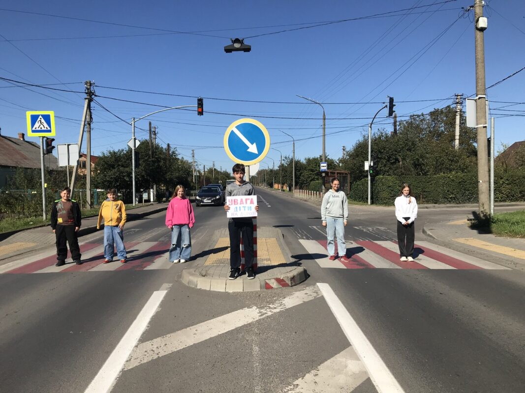 Учні закладу освіти нагадують водіям транспотру про безпечний рух біля території школи.