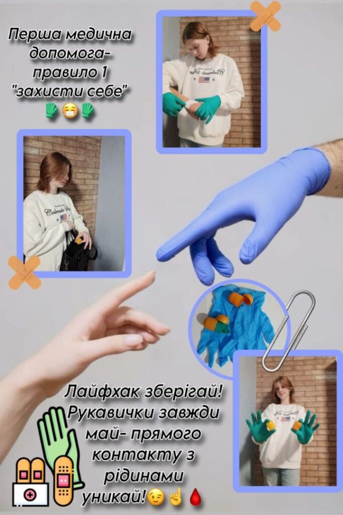 I місце – “Лайфхак зберігай! Рукавички завжди май – прямого контакту з рідинами уникай!”.